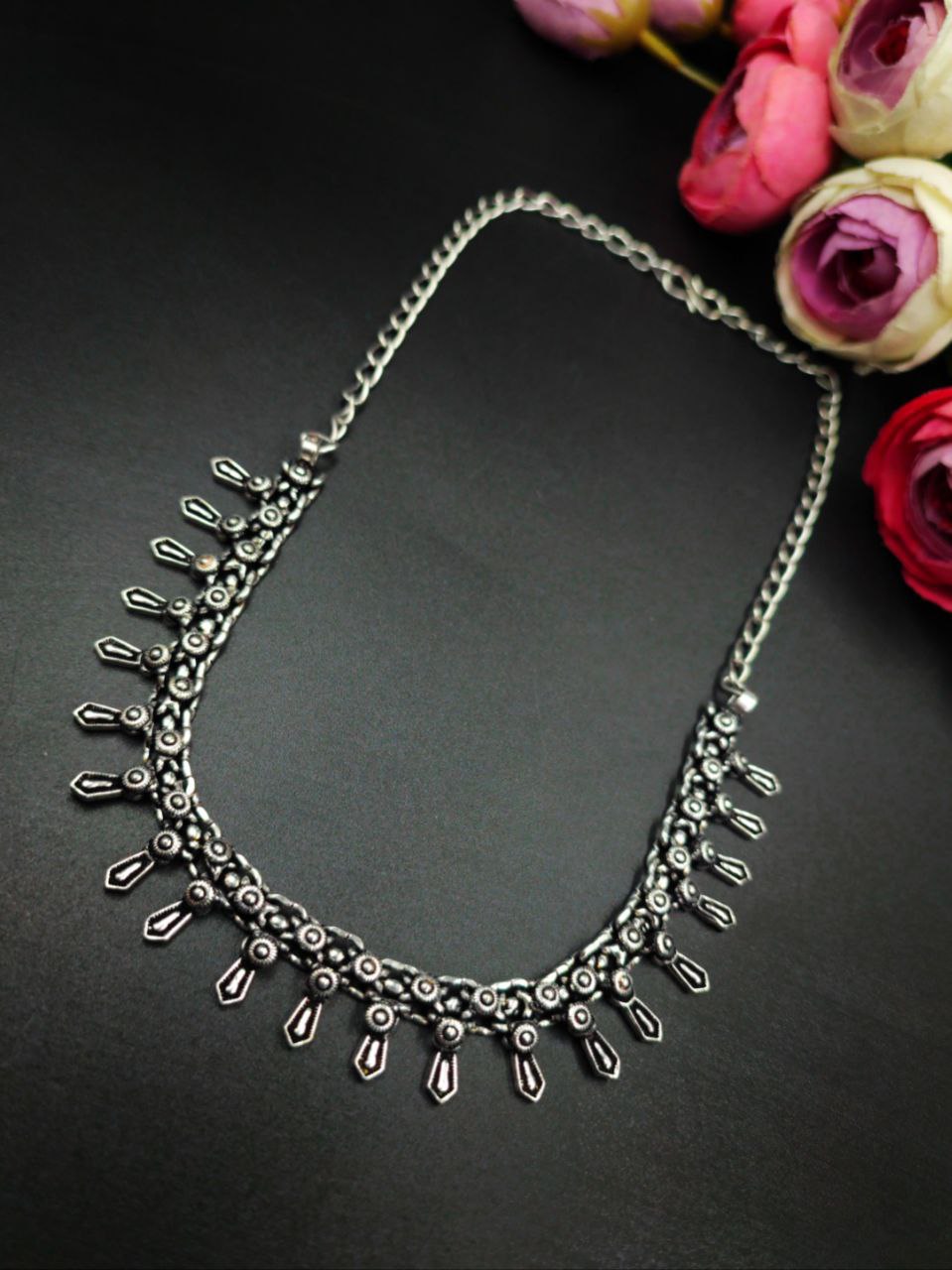 Stunning Traditional Silver-Plated Oxidized Necklace Light Weight Choker for Women