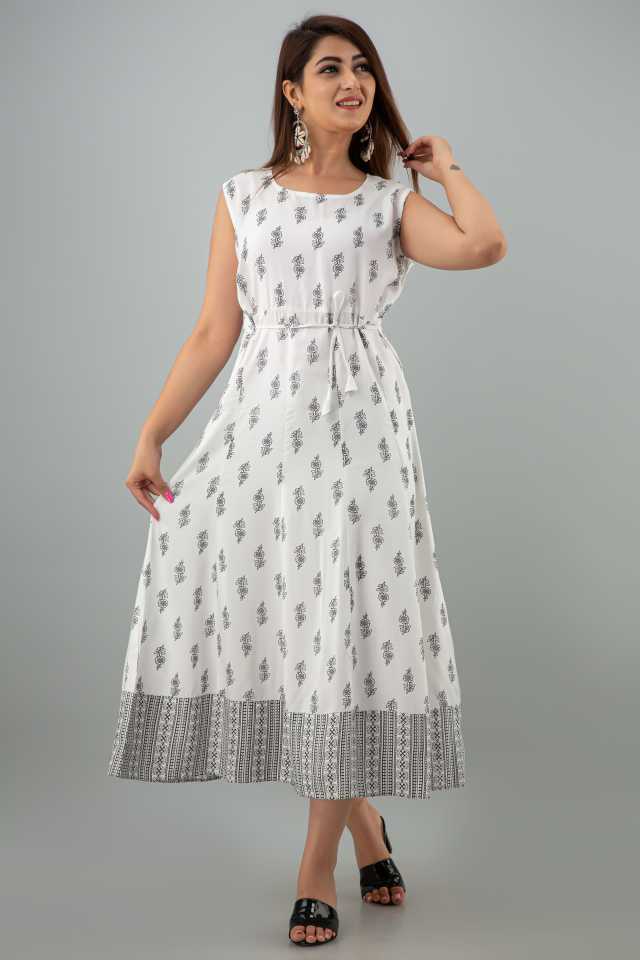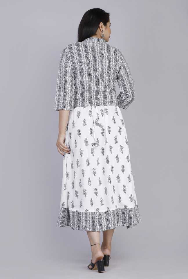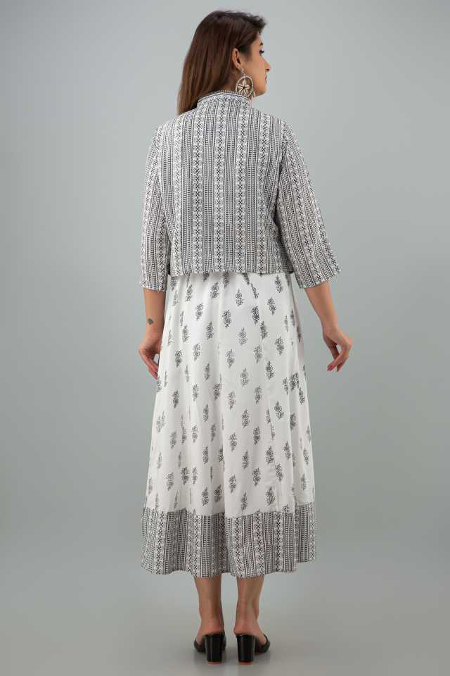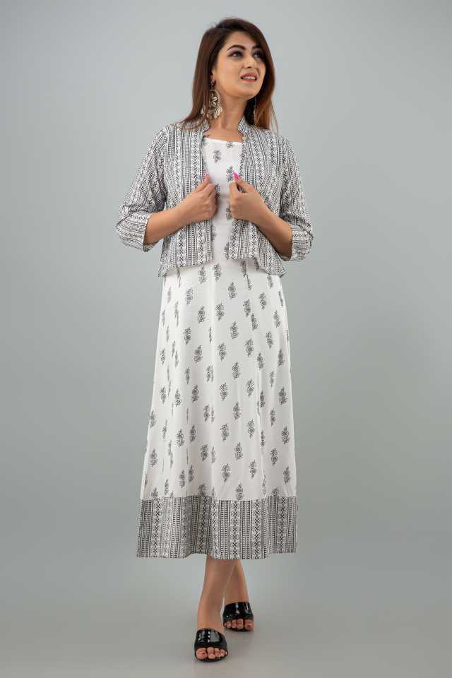 White Women Flared Kurta Designer Jacket Anarkali Kurti Mini Midi Dress Gown Partywear