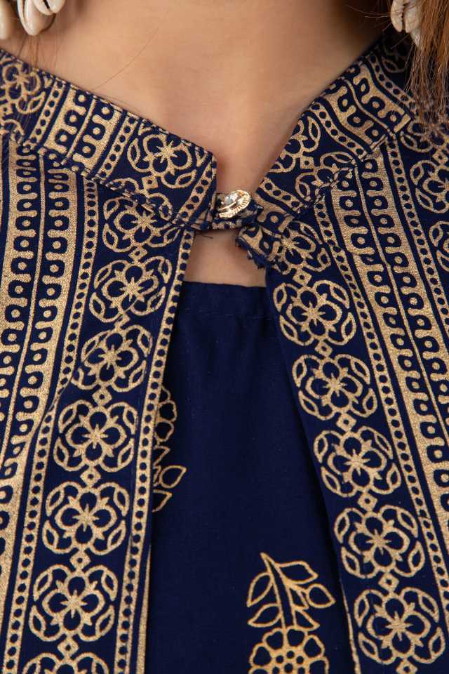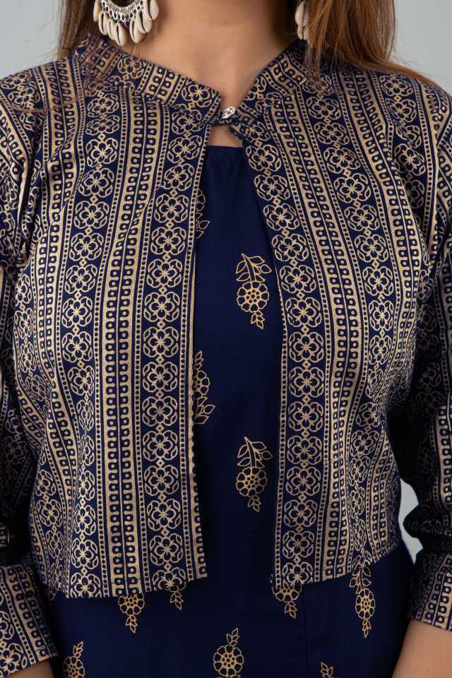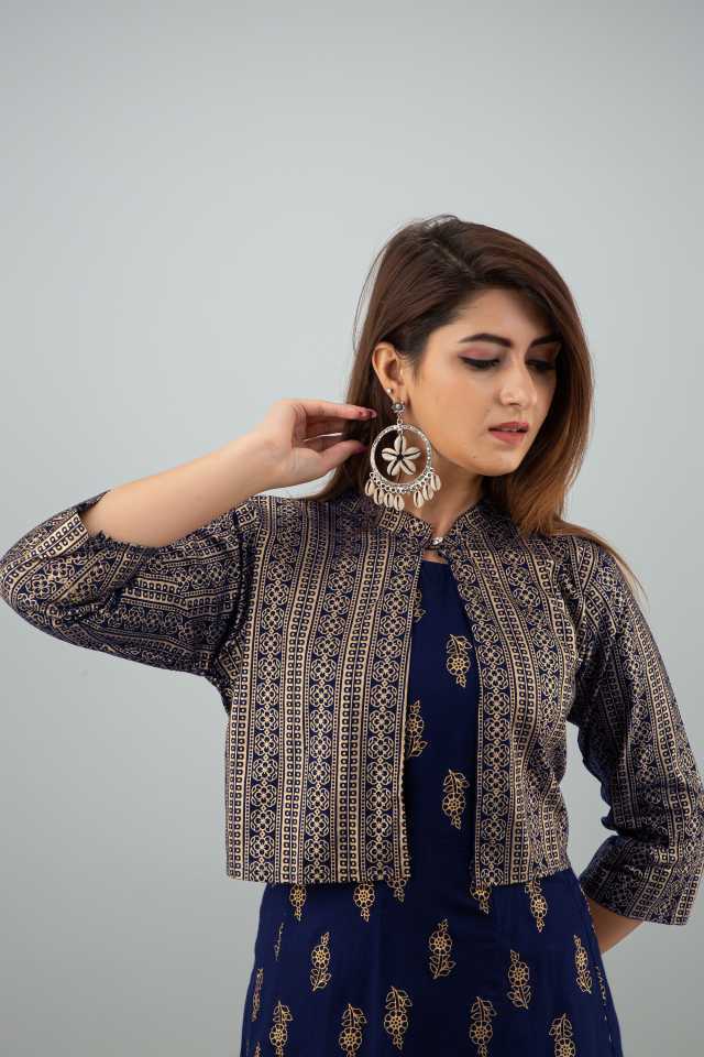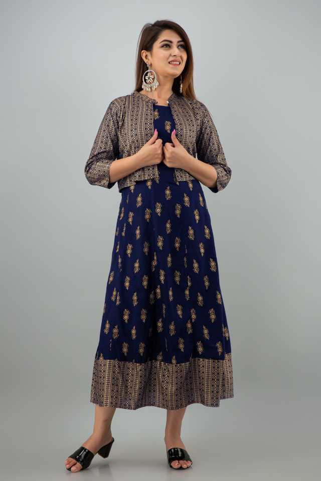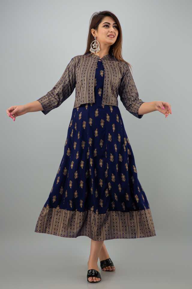 Blue Women Flared Kurta Designer Jacket Anarkali Kurti Mini Midi Dress Gown Partywear