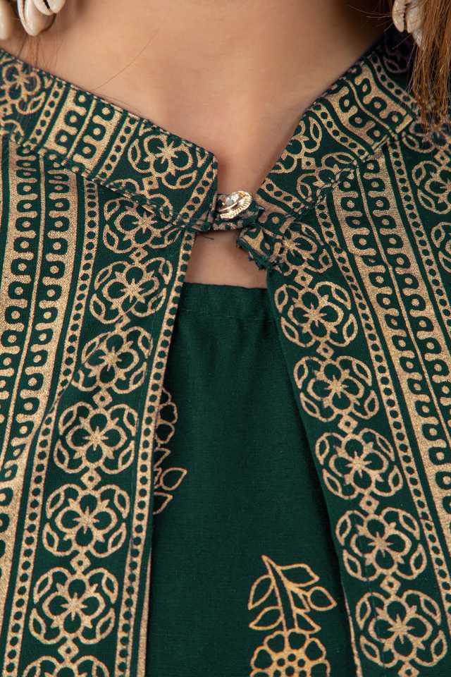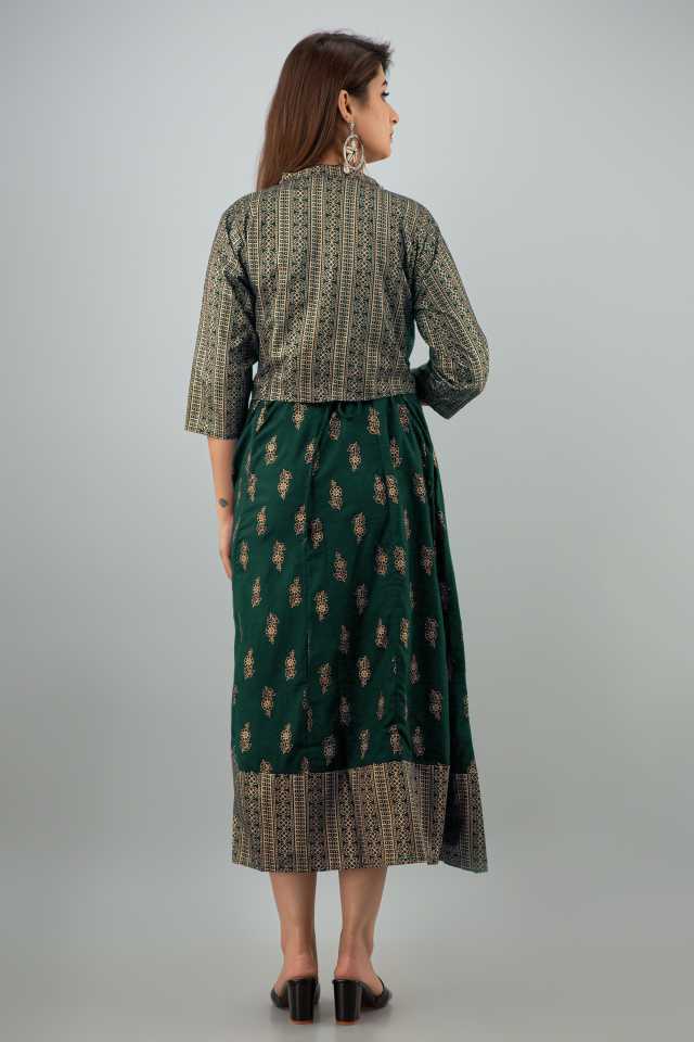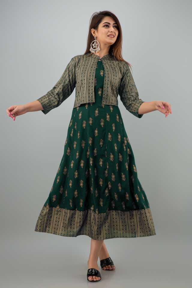 Green Women Flared Kurta Designer Jacket Anarkali Kurti Mini Midi Dress Gown Partywear