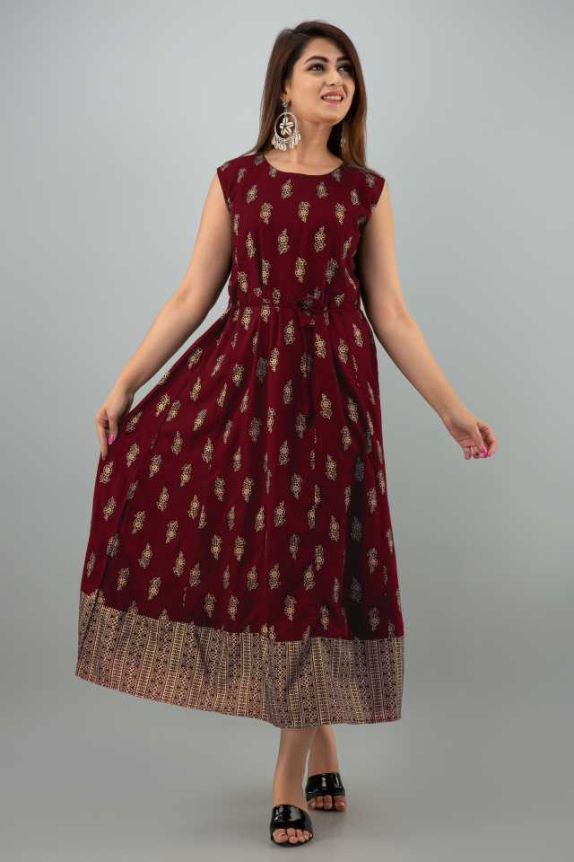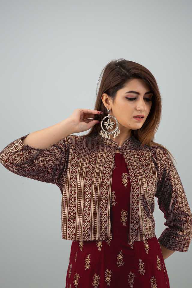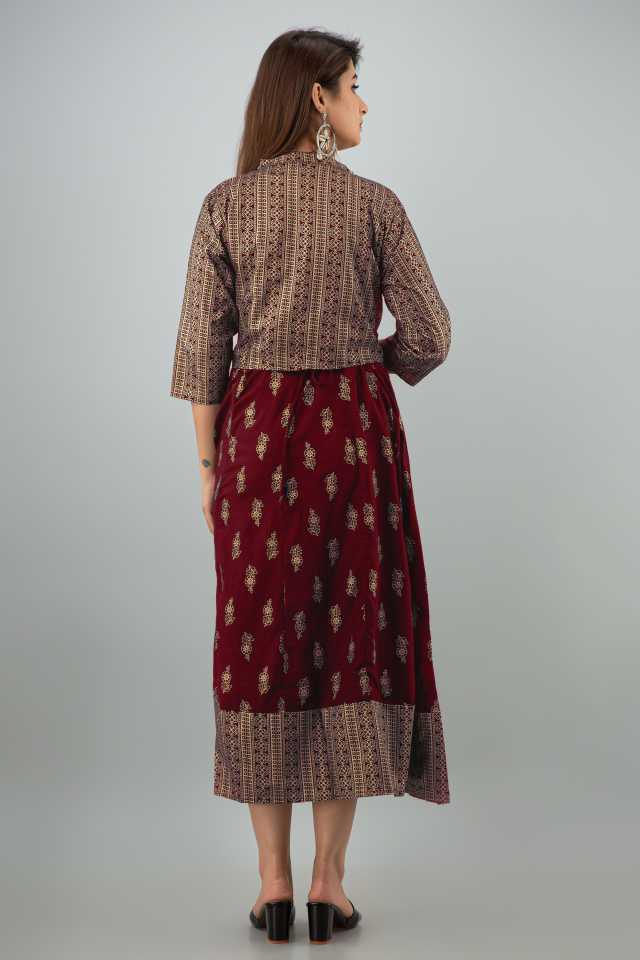 Maroon Women Flared Kurta Designer Jacket Anarkali Kurti Mini Midi Dress Gown Partywear