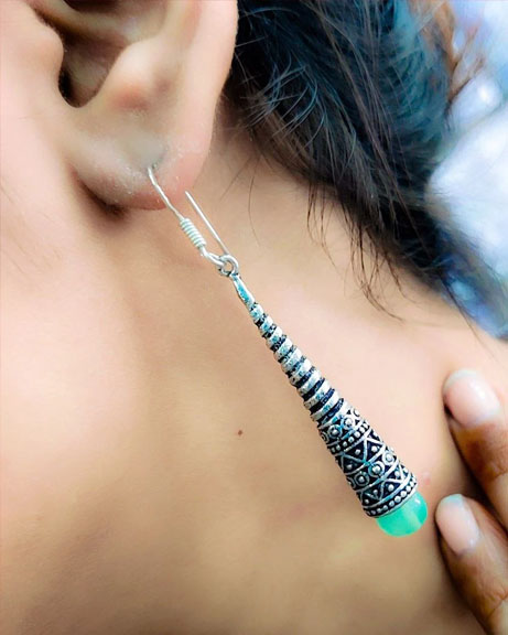 Grey Drop Women Latest Design Earrings Oxidized Silver Fashion Jewelry Earring