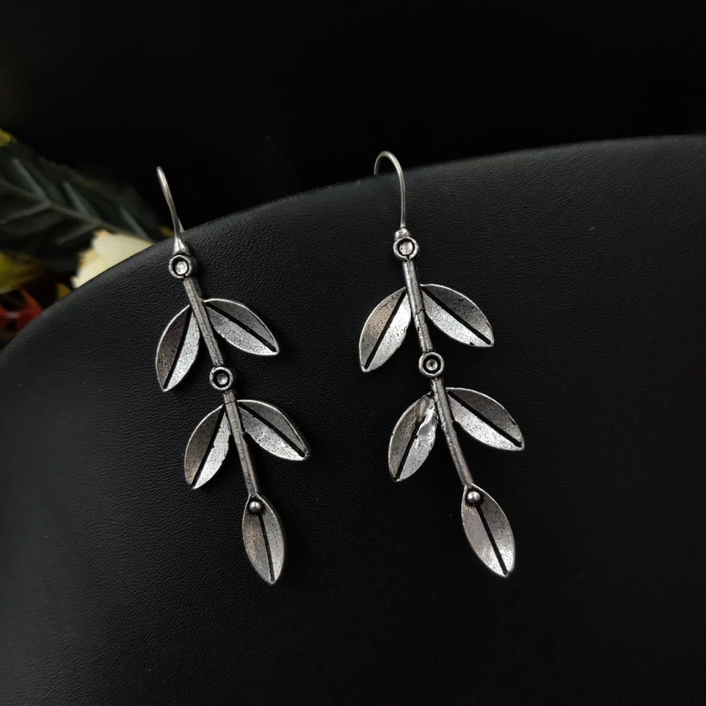 Leaves Leaf Drop Women Latest Design Earrings Oxidized Silver Fashion Jewelry Earring