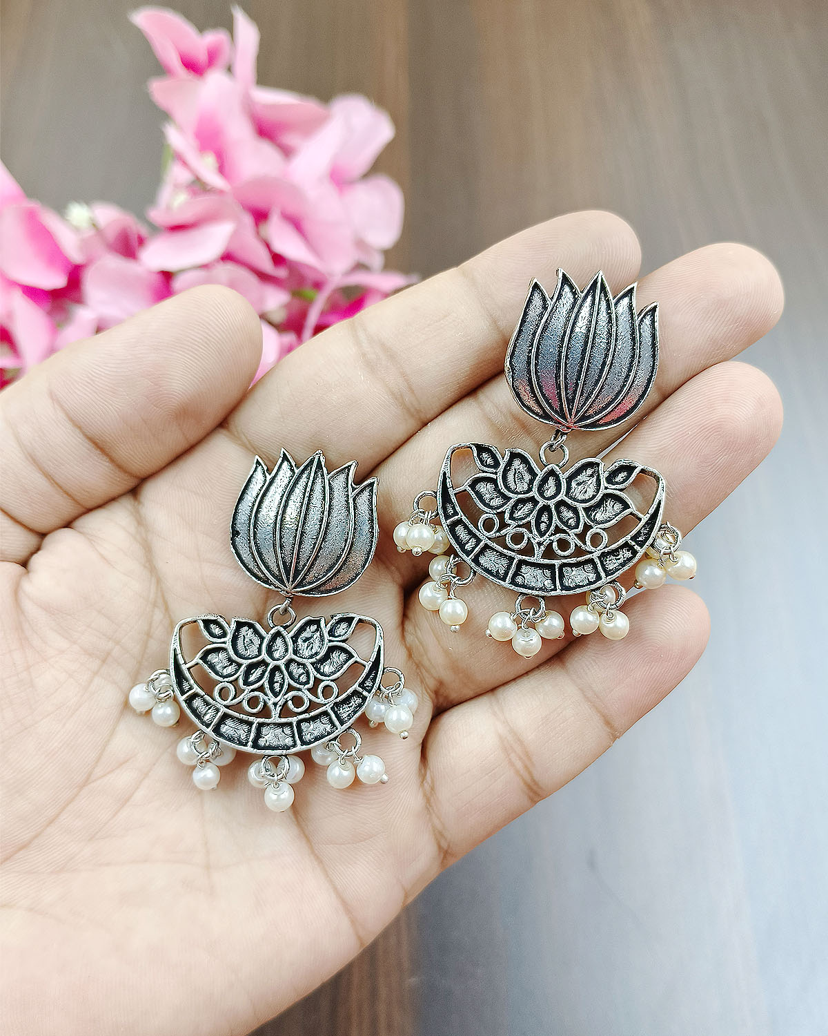 Lotus Chandbali Earrings Drop Latest Design Oxidized Fashion Jewelry Earring