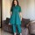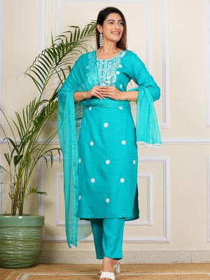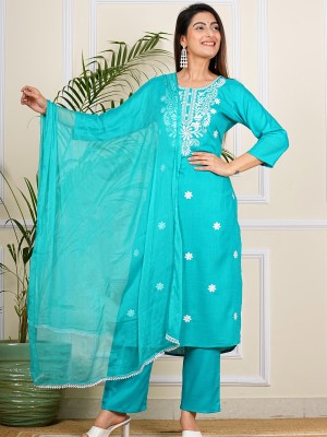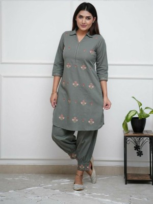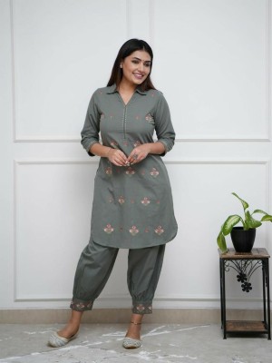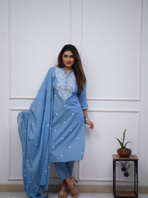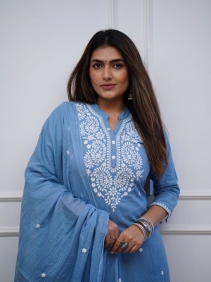 • Blue Collared Cotton Indian Pakistani Co-Ord Set Readymade Matching Shalwar Kameez Kurti with Ankle Length Pant