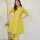 • Yellow Collared Cotton Indian Pakistani Co-Ord Set Readymade Matching Shalwar Kameez Kurti with Ankle Length Pant