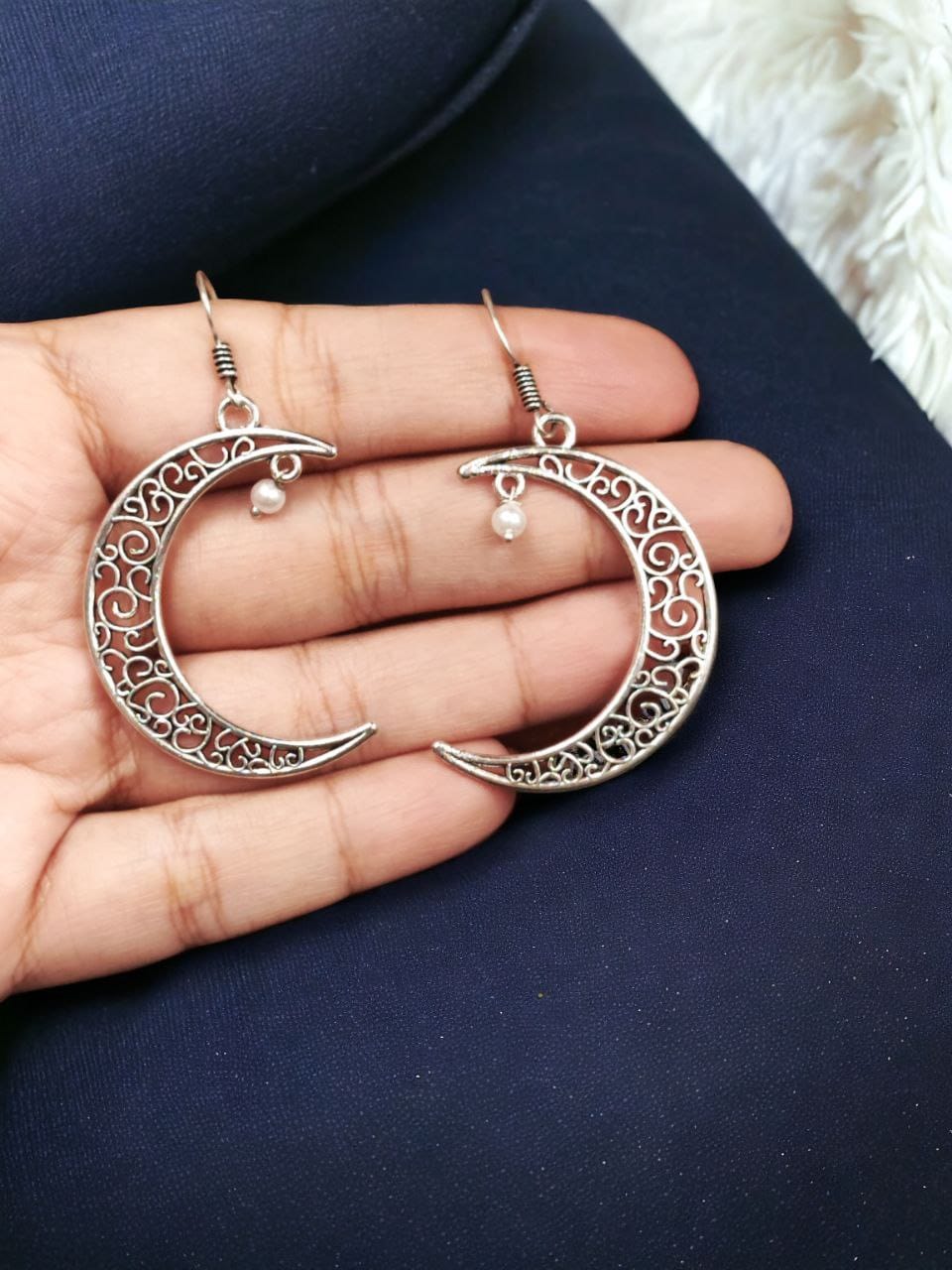 Crescent Moon Charm Earring Oxidized Fashion Jewelry Daily Wear Light Weight Hook Earrings