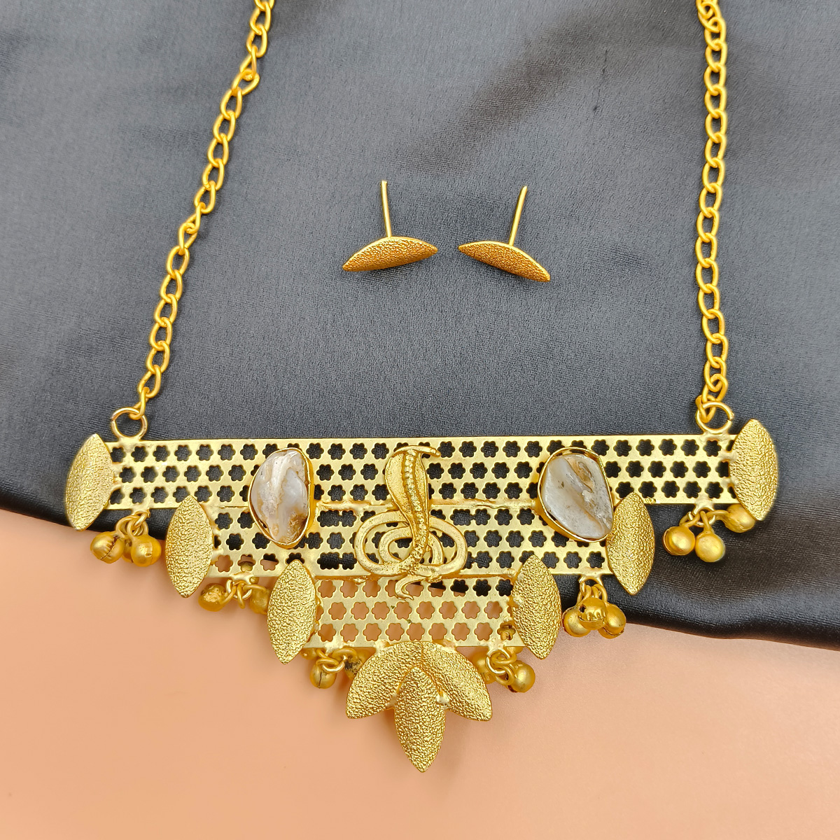 Golden Snake Embossed Long Necklace with Earring with Mother of Pearl Chain Necklace for Girls