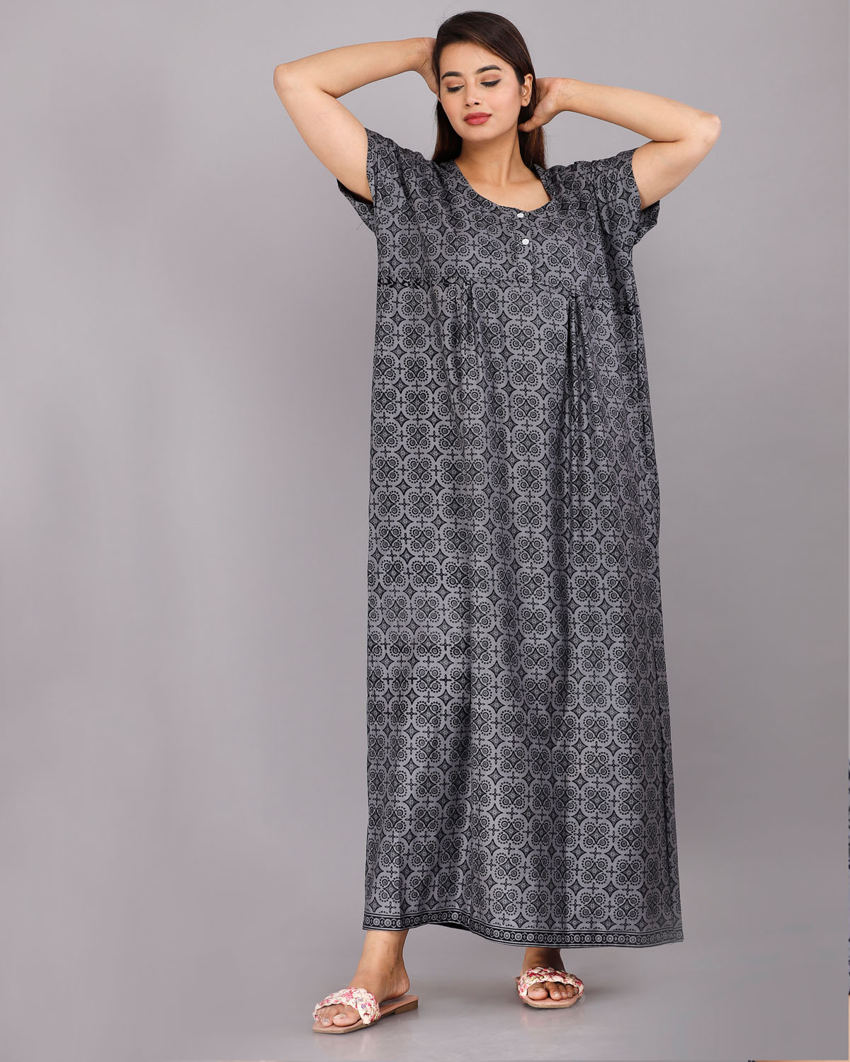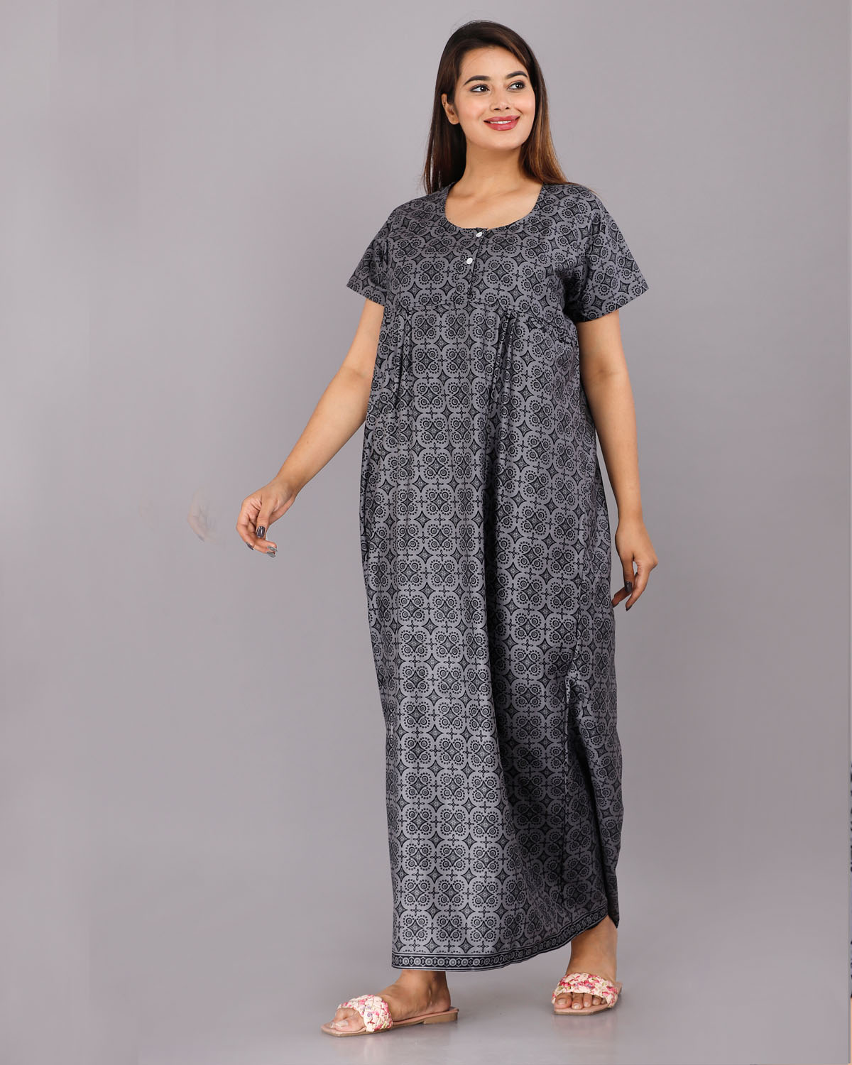 Cotton Night Nighty Gown Dress Comfortable Wear Star Printed Kurti Gown with Two Button
