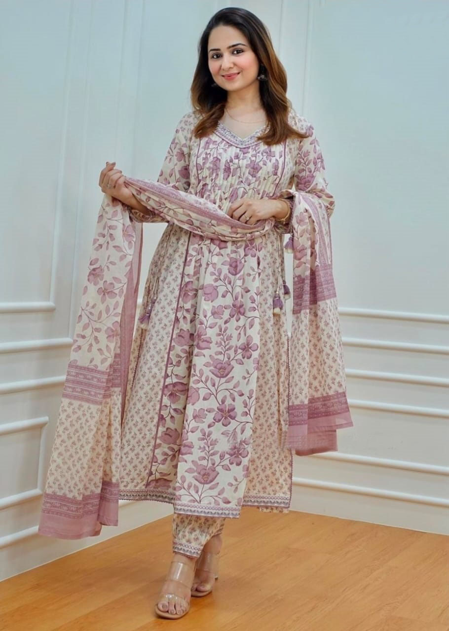 Hinaya Ivory Embroidered Indian Pakistani Aline Salwar Kameez Kurti Pant Set Kurta Set for Women